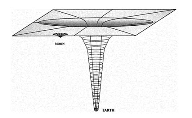 If one were to visually represent the force of gravity, as we would do with mountains or valleys for Earth, this would act as a sinking weight on a flexible sheet (Figure 1). The greater the mass of an object, the more powerful its gravitational pull and the more profound the gravitational well it forms.